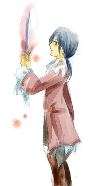 C O M M E N T 描きかけで放置中なオリジナル小説の主人公。 別にこの剣が重要な役目を…なんてことは微塵もないです。ただ描きたかっただけ…(笑) ペインター風の塗りがしたくて、ペインタークラシックで悪あがきしてみました。 難しい…。 WORKSに戻る